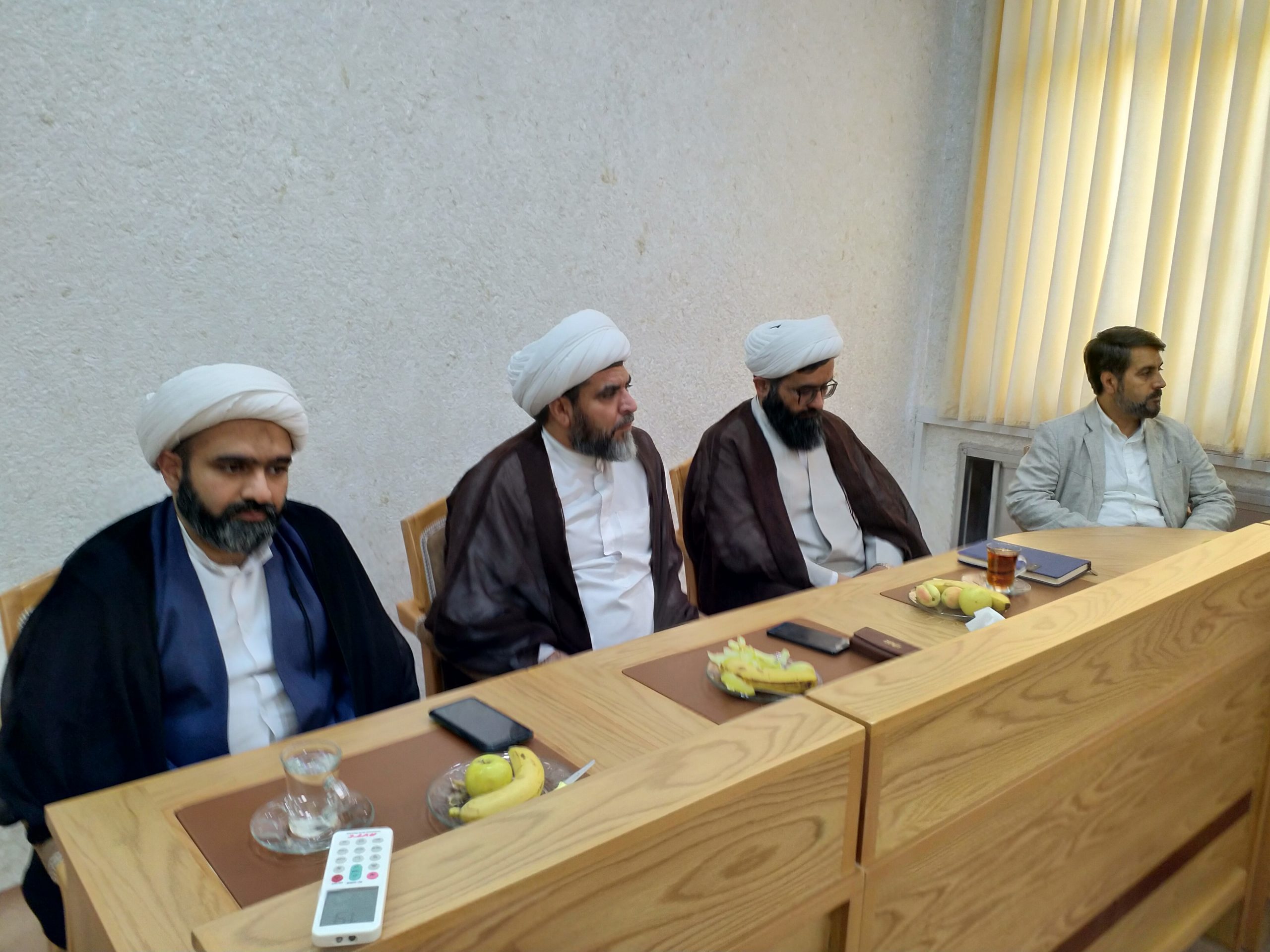 [highlight background=”” color=””]لازم به ذکر است که در این دیدار جناب آقایان دکتر محمد جاودان عضو گروه شیعه شناسی، حجت الاسلام والمسلمین غفوری نژاد نماینده دانشگاه ادیان در خراسان رضوی، حجت الاسلام و المسلمین شریعتمداری رئیس و مدیر اسبق دانشکده شیعه شناسی و عضو هیئت علمی دانشکده، حجت الاسلام و المسلمین لطفی رئیس دانشکده شیعه شناسی، دکتر محمدی مظفر مدیریت سابق دانشکده و عضو هیئت علمی دانشکده، حجت الاسلام و المسلمین ملانوری مسئول گروه سابق و ریاست دانشکده علوم قرآن و حدیث دانشگاه، حجت الاسلام و المسلمین فیاضی عضو هیئت علمی دانشکده و مدیر گروه شیعه شناسی به زبان انگلیسی و حجت الاسلام والمسلمین مشفقی معاونت آموزش دانشکده حضور داشتند.[/highlight]